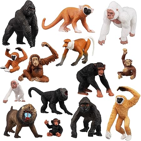Amazon Toymany 14pcs動物フィギュア ゴリラフィギュア 動物フィギュアセット リアル動物おもちゃ 野生動物フィギュアセット 動物モデル テナガザル オランウータン 誕生日プレゼント コレクション 6歳以上 フィギュア ドール 通販